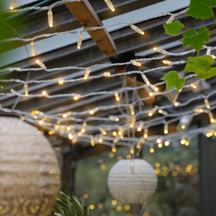 Outdoor fairy lights are wonderfully versatile and can be used almost anywhere. Wrap them around posts, along window frames or across a wall to create a twinkling backdrop.