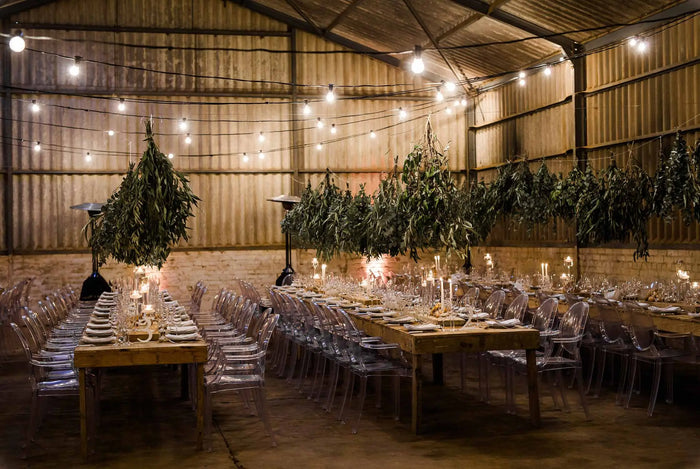 In the modern world of man-made materials, there’s nothing better than going back in time with barn timber. Aged with charm, us Brits are blessed with so many barn venues dotted all over the land but it doesn’t matter if your barn is 10 years old or 100 years young - all you need are beams. Timber beams give you the ability to bring colour & texture to your wedding reception with lots of wedding lights. Chances are the venue will offer services for hanging things high, so here’s how to do it...