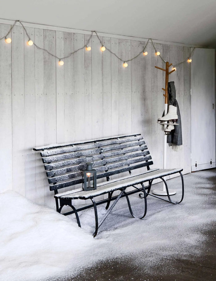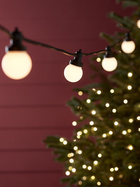 For a more contemporary approach to roof lighting, a super quick choice are festoon lights. With extendable lengths you can easily estimate how many you'll need by pacing the ground below the roof line. Opt for a larger bulb spacing (gap between each light) as they’re easy to hang and give an inviting glow to your home without being too crowded. Best suited hung above eye level, they’re the ideal on-trend Christmas light that you can leave up all year round too.