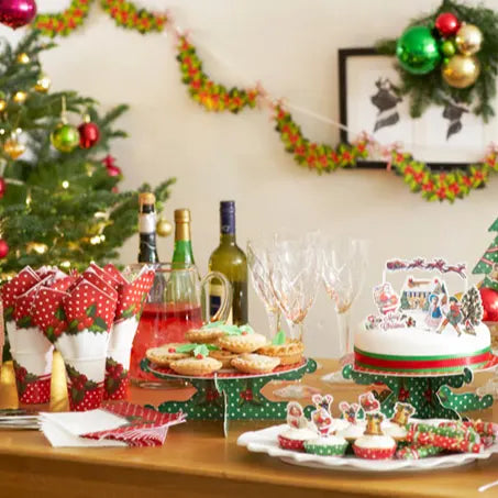 If you're in the baking spirit, rustle up some Christmas cakes using some festive Christmas toppers and cake kits for an added dash of colour at the dinner table. Or, use these awesome cake stand to host the finale of the feast; the scrumptious Christmas cake!Don't forget the bottle of bubbly and plenty of party poppers to create the ultimate Christmas party setting for your guests.