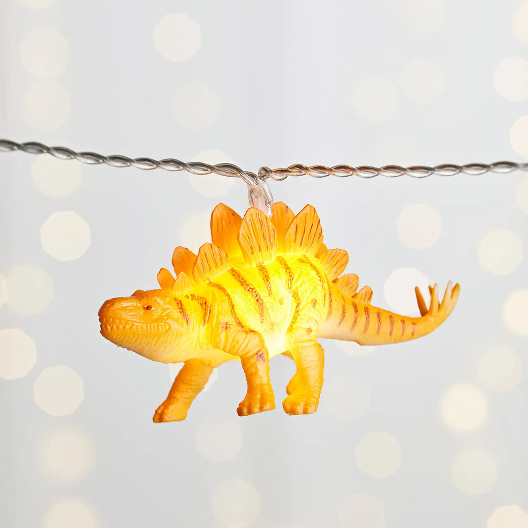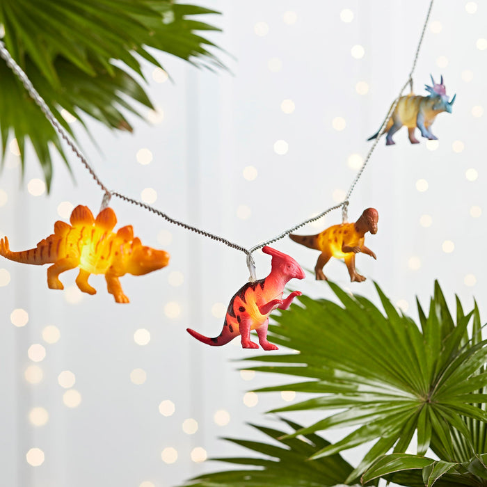 Fairy lights look great around bed frames or pinned up on wall above the bed head for the perfect ambient night light. The cosy illumination from the warm white LEDs create the perfect calming atmosphere and makes the dark not so scary for your little ones. Depending on the fairy lights design, you may be able to style the dinosaurs standing upright. This looks awesome when placed along the length of a desk or shelf as it gives the look of a marching heard.