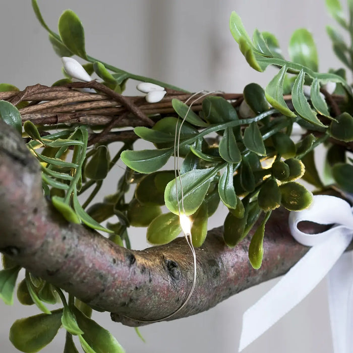 Start by taking the branch and wrapping it with your Easter garland, fixing into place using florist wire. Entwine both in micro lights, this will not only give your décor a glow, but it’ll also to make sure your masterpiece is held together securely! Once tied together, tease out the foliage to give your branch a natural looking finish.