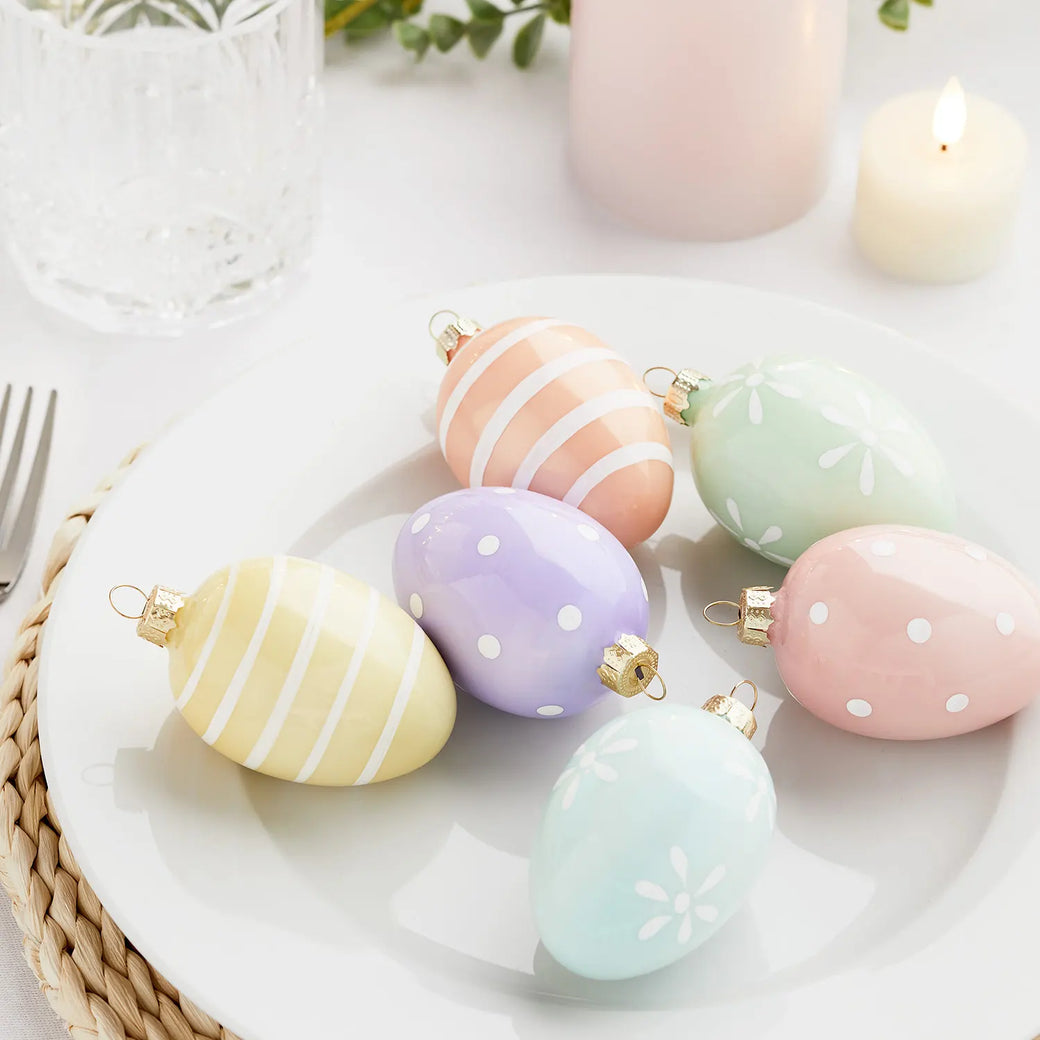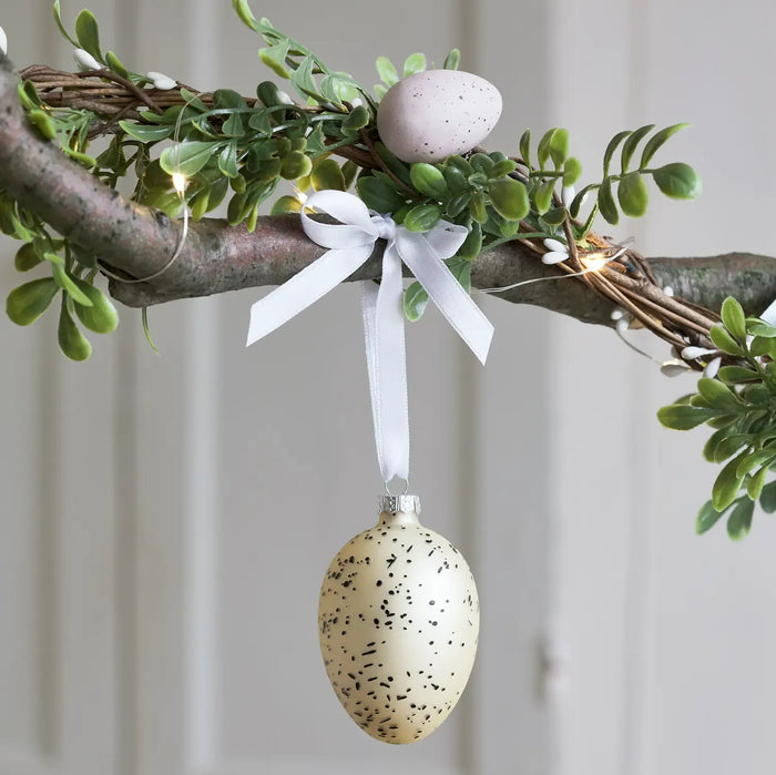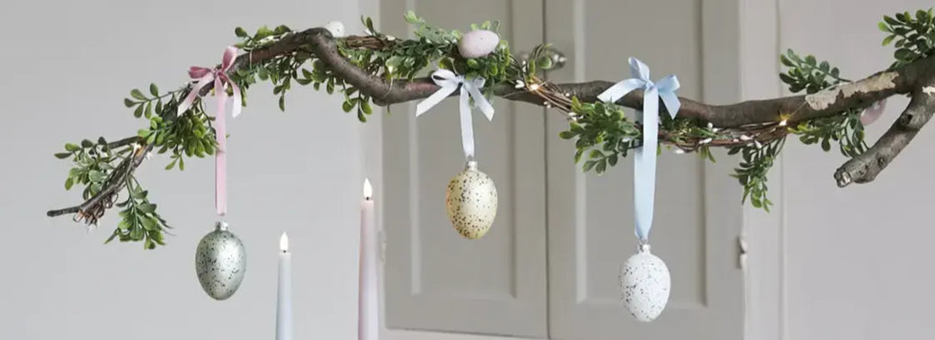Choose hanging ornaments to dress your branch, we love Easter eggs, rabbits or chicks! Opt for pastel colours for a classic seasonal look or go for playful & whimsical motifs that the whole family will enjoy. To attach, simply loop ribbon through each hook and tie onto the branch with a bow.