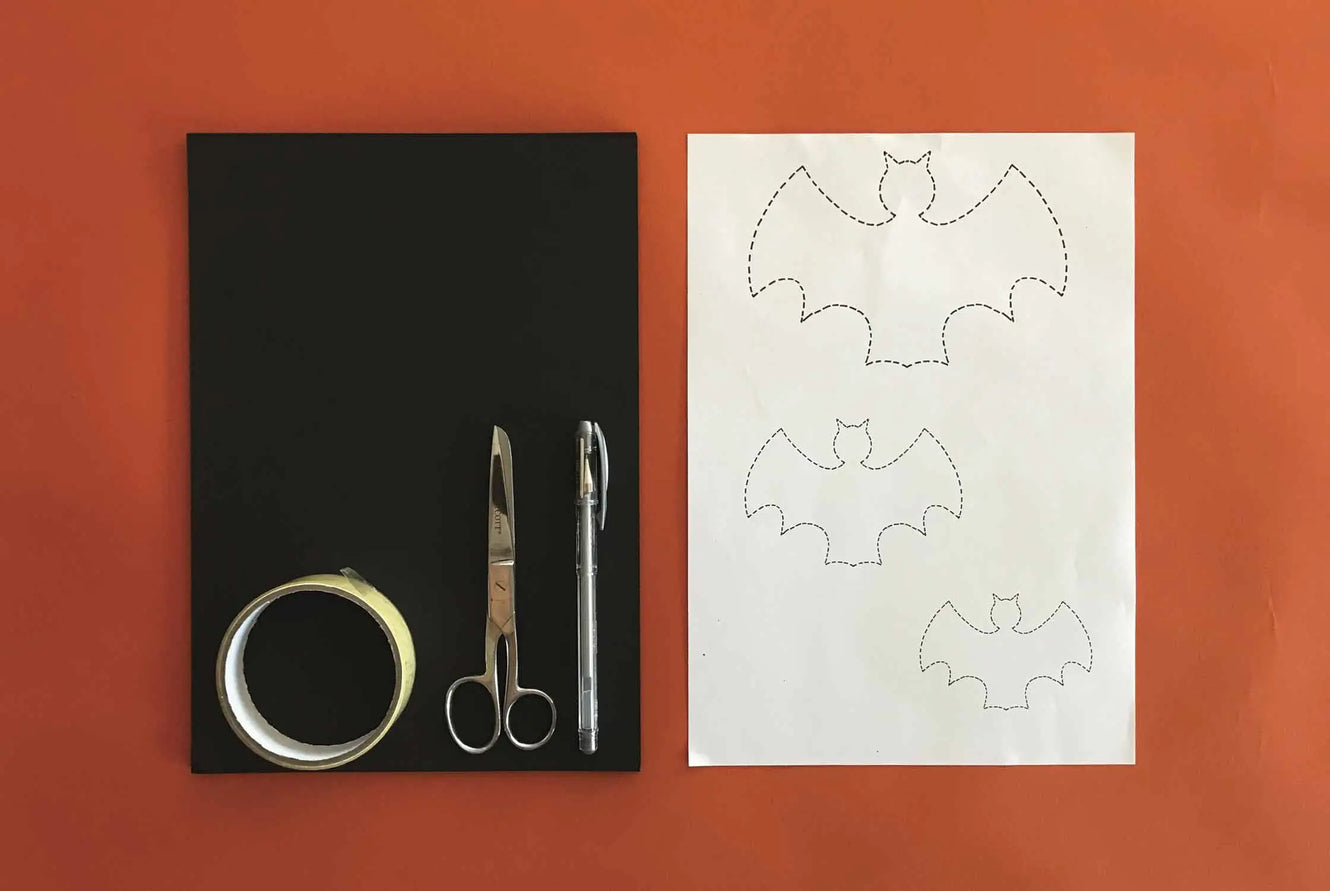Find and print your bat stencil, the simpler the better. Mix it up a bit and print a few different sizes on the same piece of paper. Top tip - take it from us...don’t go too small, they’re almost impossible to cut around and will get lost in the final display!