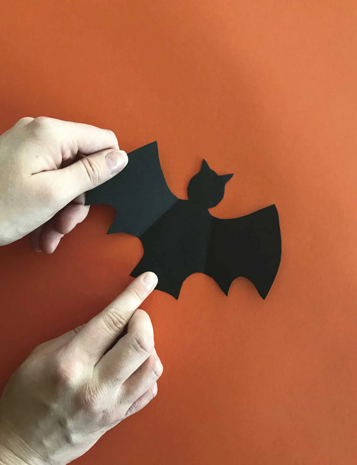 Gently bend each wing slightly inwards to bring your bats to life. Finally, attach a small piece of double sided tape to the back of each bat and start sticking!