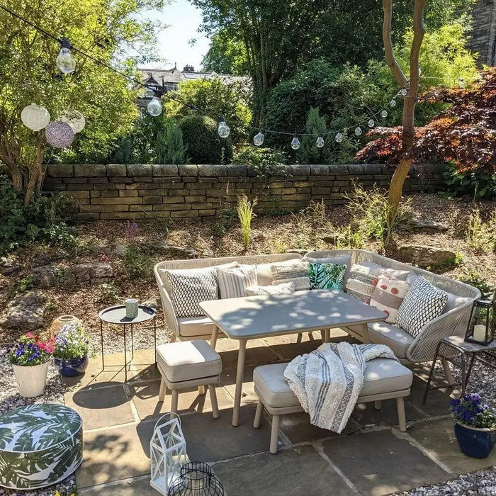 One of the best ways to elevate your outdoor space is to create an alfresco dining area. Gather around the table with friends and family and connect with each other over a delicious meal all whilst basking in the summer sun. Long tables are a great option for all different spaces, as they take up less width while still being able to fit all your loved ones and can be decorated with flowers, flameless candles and table runners to add a pop of colour and a glow throughout the summer months. For styling inspiration for creating the perfect alfresco dining area, see our helpful styling guide here.