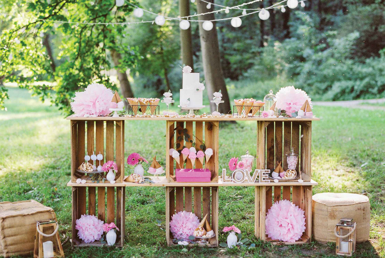 Pretty in pastel! While mixing patterns and colours is a fun way to add depth, working in a similar colour is more calming and looks less busy. Our favourite colour scheme for the summer party season has to be pastels, especially Pantone’s Pink Icing and Petit Four. Think pom poms, paper lanterns and picnic blankets. The soft colours compliment each other with ease and the neutral creams balance out the delicate pinks and blues. Contrasting with the rich greenery, pastel colours really pop. They are perfectly paired with warm white garden lights to create an outdoor living room effect which is always sought after. A combination of lanterns and sparkly fairy lights on all levels are ideal for illuminating your festivities whether it's a picnic or alfresco banquet!