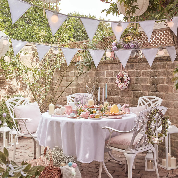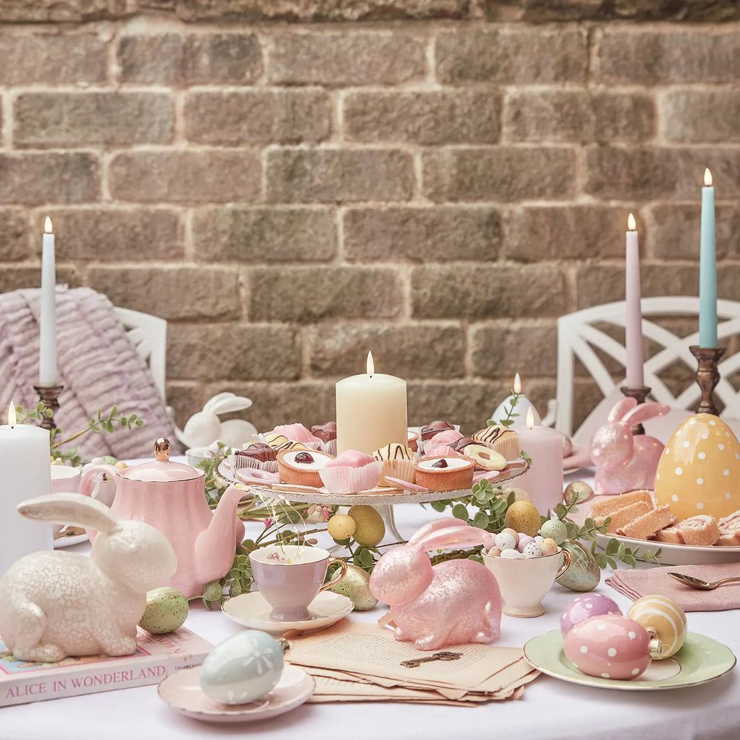 Embrace the magic and nostalgia of childhood tea parties and uplift table tops with a charming colour palette of pastel pinks, blues and yellows. The calming and peaceful tones transport you to an enchanting world full of wonder and happiness, perfect for creating some treasured memories for all the family to enjoy. Embrace the outdoors by weaving spring wreaths and garlands along your outdoor dining table, in between mottled glass bunny silhouettes and sparkling micro lights to create a whimsical tablescape this spring.