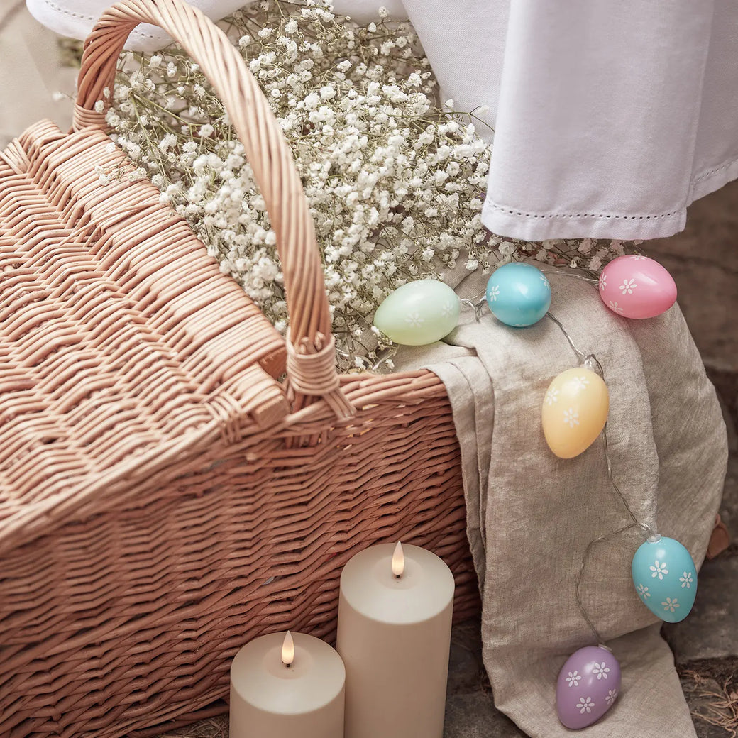 Add the completing touch to your Easter tea party décor with a seasonal glow for your table. Use Easter fairy lights and LED Easter pillar candles on top of your table and around your seating areas for a family friendly alternative to real candles that’s safe for using around all ages. For the finishing touch, create a stunning centrepiece by positioning a cake stand amongst the spring foliage and placing a TruGlow® pillar candle in the centre, filling the rest of the stand with lots of sweet treats ready for guests to enjoy.