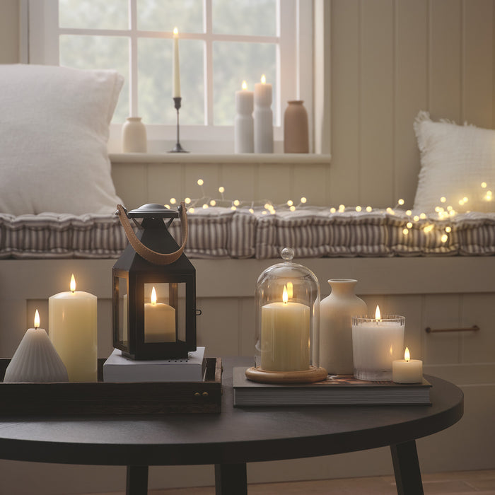 Nothing says “welcome home” like a shelf or a bookcase twinkling with warm, golden light. Battery powered candles and lanterns are ideal for bringing some glow to your shelves: the LED flames always remain cool to the touch, so can safely be tucked into even the smallest of spaces. What’s more, with 6-hour timers and remote control functionality, it’s a totally fuss-free operation: no need to be clambering on footstools to reach those high-up shelves! We recommend grouping candles of varying sizes together and styling with coffee table books, miniature paintings and mango wood trays for an Insta-ready scene.