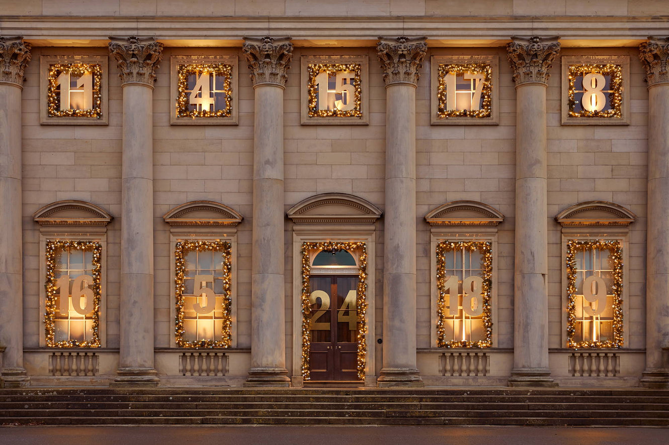 The heart of this year’s festive display at Harewood is an awe-inspiring advent calendar adorning the house front, imagined by Harewood House’s Artistic Producer, Zoë Hughes and brought to life with an abundance of our pre lit Christmas Garlands framing each window and door.