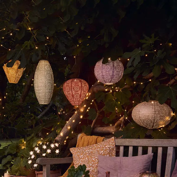 Easy to install and with no need for access to a power socket or batteries, solar lights will simply soak up the sun during the day and gently illuminate once dusk begins to fall. Solar powered lights have little to no running cost, as the batteries are charged by a natural source of sunlight, making for a cost effective solution to illuminate your outdoor space. With such a wide variety of solar powered garden lights to choose from, from festoons and fairy lights to lanterns, there is something to suit every garden and price range.