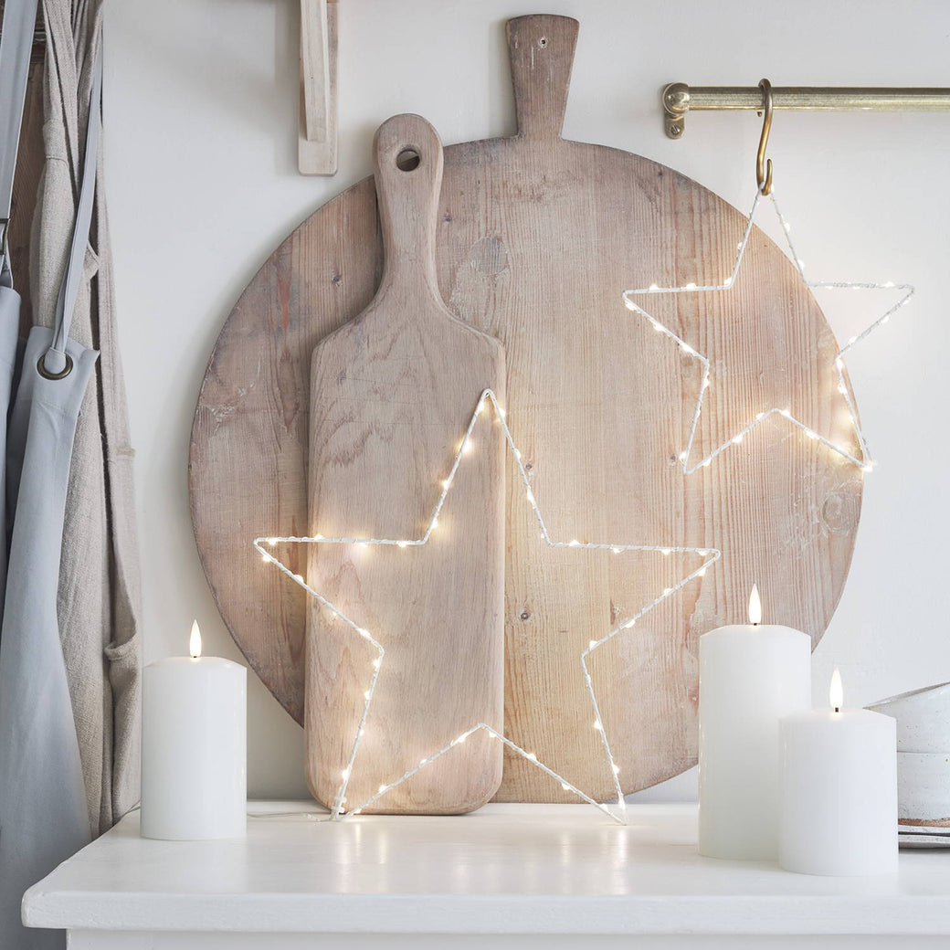 Whilst the Nordic and Scandinavian design incorporates a bright, fresh aesthetic, it can still be cosy and relaxing with the addition of warm white Christmas lights. Add warm white Christmas tree lights to your flocked tree and place LED candles to lanterns and side tables for a traditional winter sparkle that fills your home with a comforting glow as you snuggle up each evening. Our collection of Osby star lights are perfect Christmas décor staples as their minimalistic shape is combined with warm white micro lights for a festive glow that complements any space.