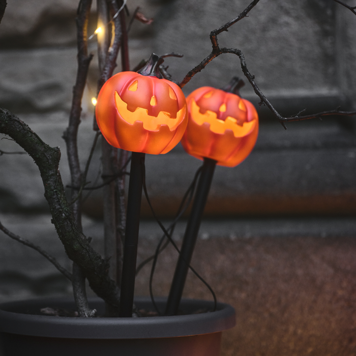 Finally, anchor your look with glowing pumpkins throughout the garden. The Halloween Garden Stake Lights are ideal for this. They’re durable for outdoor use and easy to position around your garden. Dot them along paths or nestle them among fallen leaves to capture the essence of autumn with a hint of mischief.