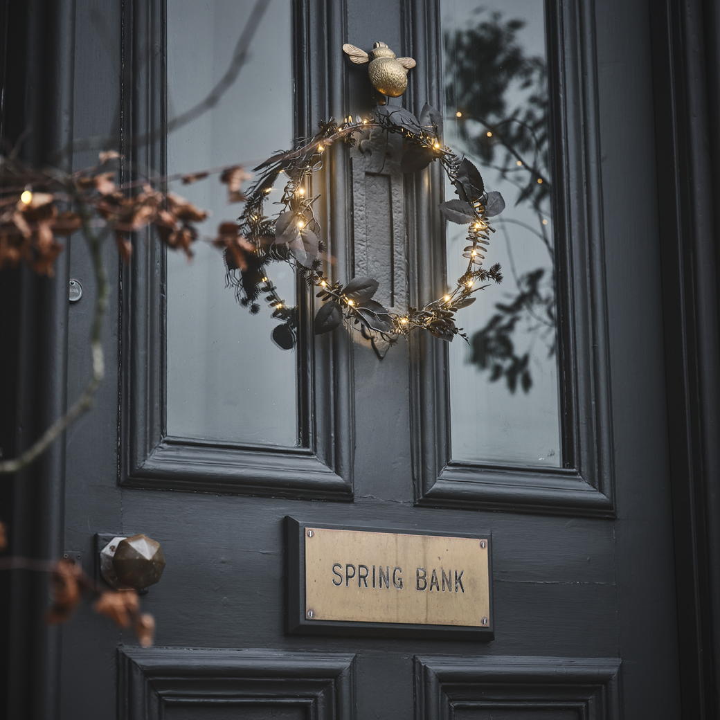 Start by framing your doorway with a Pre Lit Black Foliage Wreath. Its gnarled twigs and subtle warm lights add instant gothic elegance, perfect for both traditional and modern homes. The soft glow creates a mysterious atmosphere even before dusk falls. You can enhance the effect by draping LED micro lights or subtle warm fairy lights around your doorframe to mirror the wreath’s warm tone.