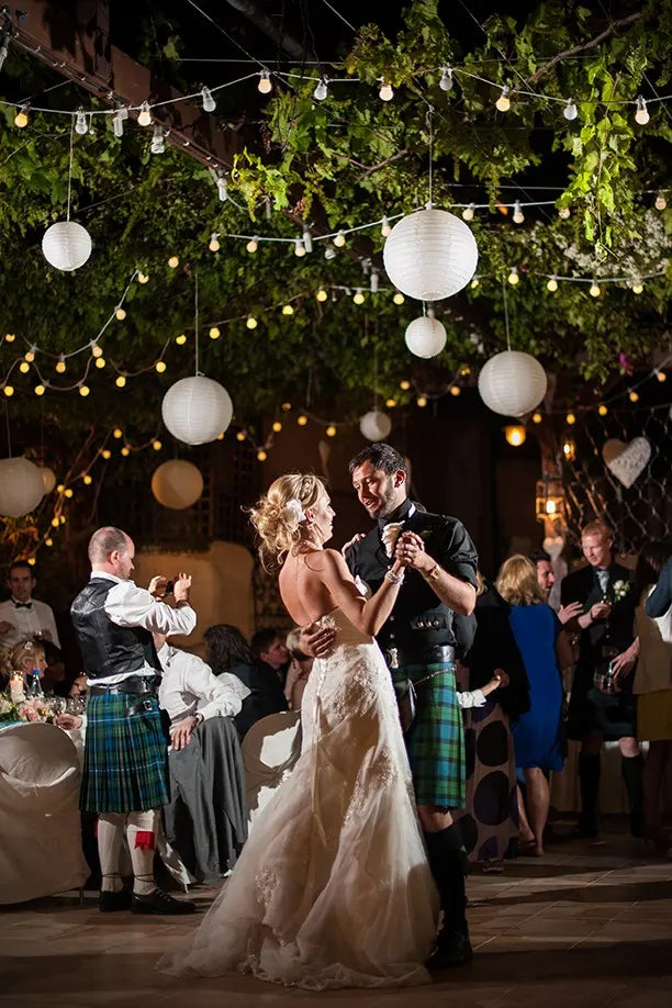 The general rule of thumb for any wedding venue is to light at three levels, so your wedding lights should be placed overhead, in the form of festoon lights or fairy light strings, and then add lanterns on the ground for a deeper effect. Once you have placed your wedding candles on the tables, the look will work brilliantly, and take guests from standing to seating to dancing in style!