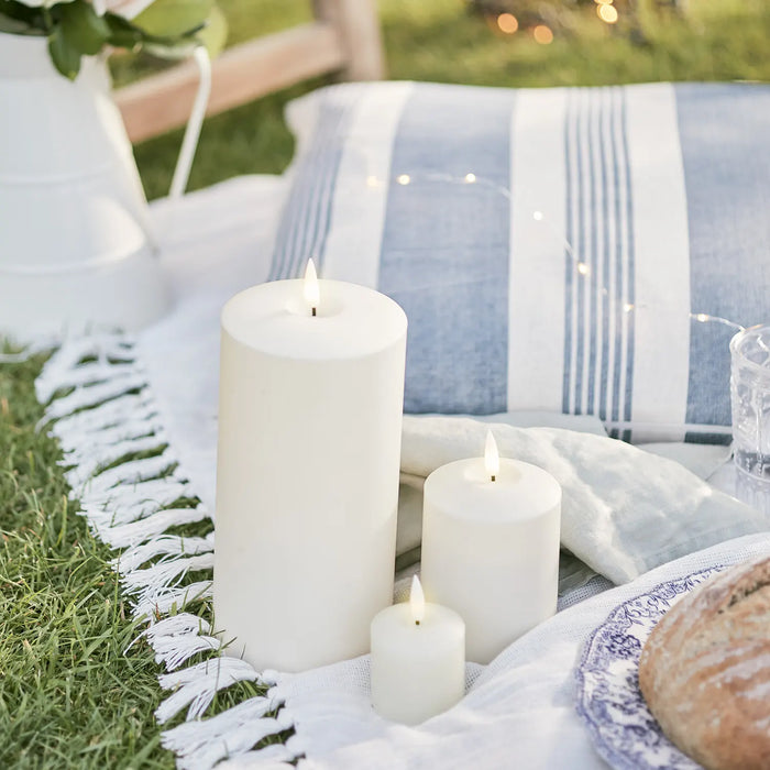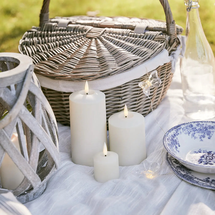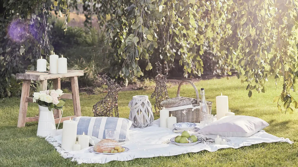 One of the best ways to create moments of joy at your picnic is by adding a cosy ambience. Fairy lights are a sweet and simple way to add a summer sparkle to your alfresco setting and are a great lightweight option to carry around in your bag. Outdoor candles are also a great way to add a summer glow to your picnic as they’re super safe to place on the ground and can be used around children and pets too! Dot your candles and lights around the edges of your picnic blanket for a soft summer shine as you dine on your food.