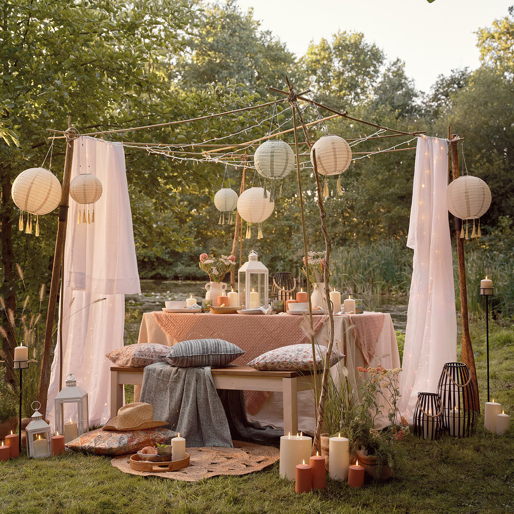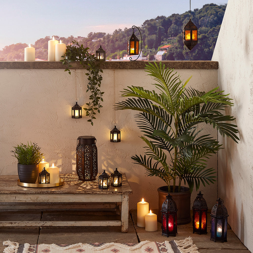 Maximise small spaces with battery festoon lights, solar lights, or compact outdoor lanterns that don't need wiring.