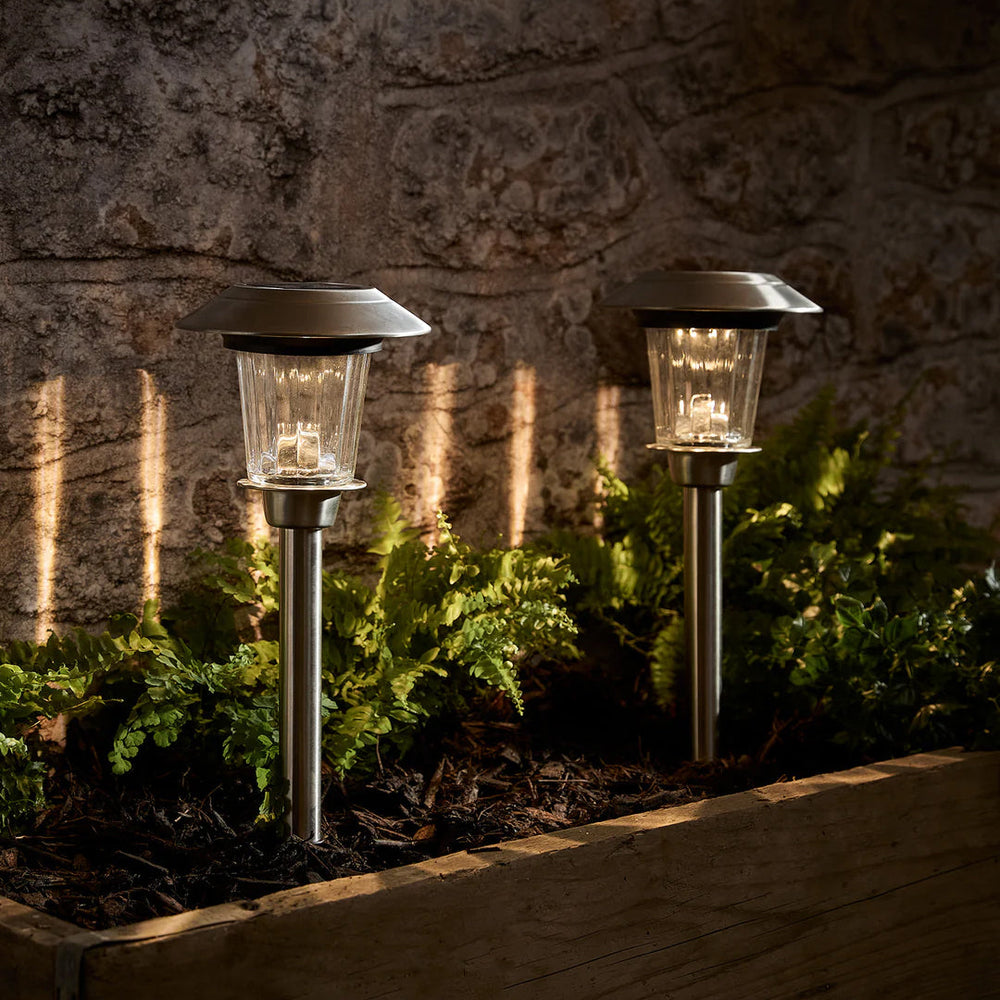 Brighten your paths and walkways with solar path lights. Simply place the solar lights where you want them, switch them on and you’re done! You can also use solar stake lights in the...