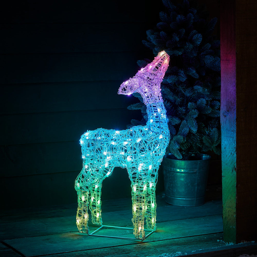 Light up reindeer are the ultimate Christmas lights for your garden or indoors. Packed with plenty of lights for a big festive visual impact, our illuminated LED reindeer Christmas figures are perfect to place at entrance-ways and on lawns, providing a magical glow come evening time. Whether you fancy a single light-up stag, or a herd of light-up deer, we have several beautiful small and large light up reindeer to choose from.