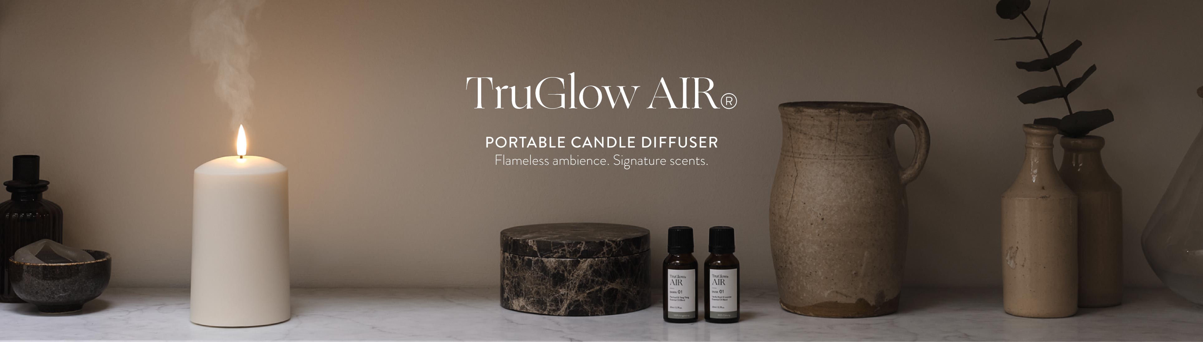 With an exclusive design, perfected in-house over two years, TruGlow AIR® combines our unique TruGlow® candle technology with an innovative scent diffuser into one beautiful piece which elevates any space.
