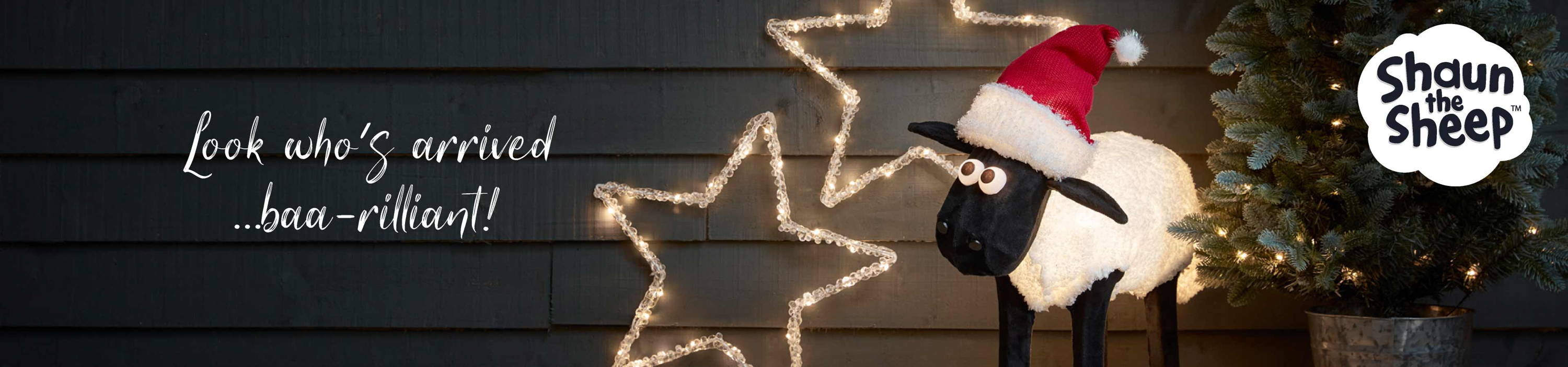 You don’t want to miss our limited stock Shaun the Sheep™ Christmas figure! Get ready for exciting adventures with our favourite character as you welcome Shaun into your flock. Sparkling with festive spirit, this cheeky figure comes ready for the season with a detachable red Santa’s hat to give your guests a warm welcome. At 50cm in height and a fluffy fur coat illuminated with 48 warm white LEDs, our playful Shaun figure looks baa-rilliant throughout the day and is brought to life at night with a soft glow.