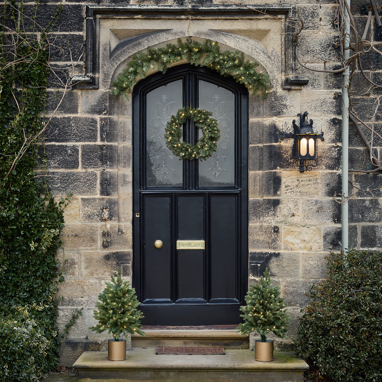 Give your front door a magical, traditional touch this Christmas with our pre-lit outdoor wreath. At 50cm in diameter and carefully crafted from realistic faux evergreen branches, the wreath features 40 warm white LEDs, to give the entrance to your home a warm and inviting glow.