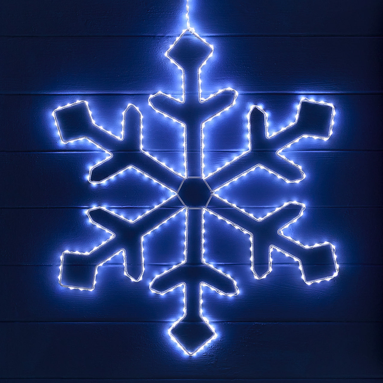 Snow is falling! Our snowflake silhouette is a great decoration for indoors or out. Ideal for adding a frosty look to your windows or using as part of your Christmas garden display, it features a 70cm string attached to the top of the frame to enable you to hang it up with ease. The 336 icy white LEDs illuminate the snowflake’s shape to create a sparkling silhouette effect once illuminated. With the plug included, the generous 5m lead cable ensures you are in easy reach of the plug socket. Simply plug in and switch to the handy 6 hour timer for automatic glow at the same time each day.