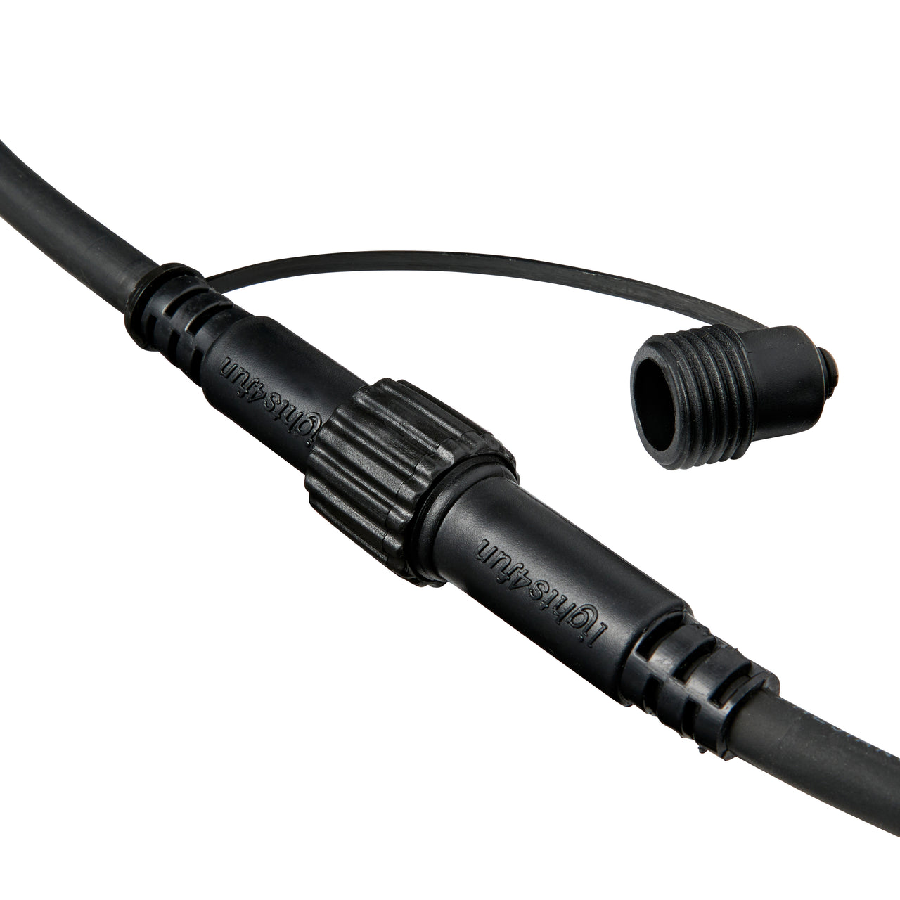 30 DAY RETURNSThis Ingenious Connect extension cable has specifically been designed solely for use with our Ingenious Connect lights. This 10m black extension cable connects with our Ingenious Connect range lights with a simple push and twist motion - so extend away! Made from durable perspex and rubber and with watertight seals you can rely on them come rain or shine. With our connectable range and extension cables, it's never been so easy to fill your garden or venue with brilliantly bright Edison lights. This cable is only connectable with our Ingenious Connect range and the plug is sold separately . The two shrink wraps included are an easy way to hide the join in your lights.