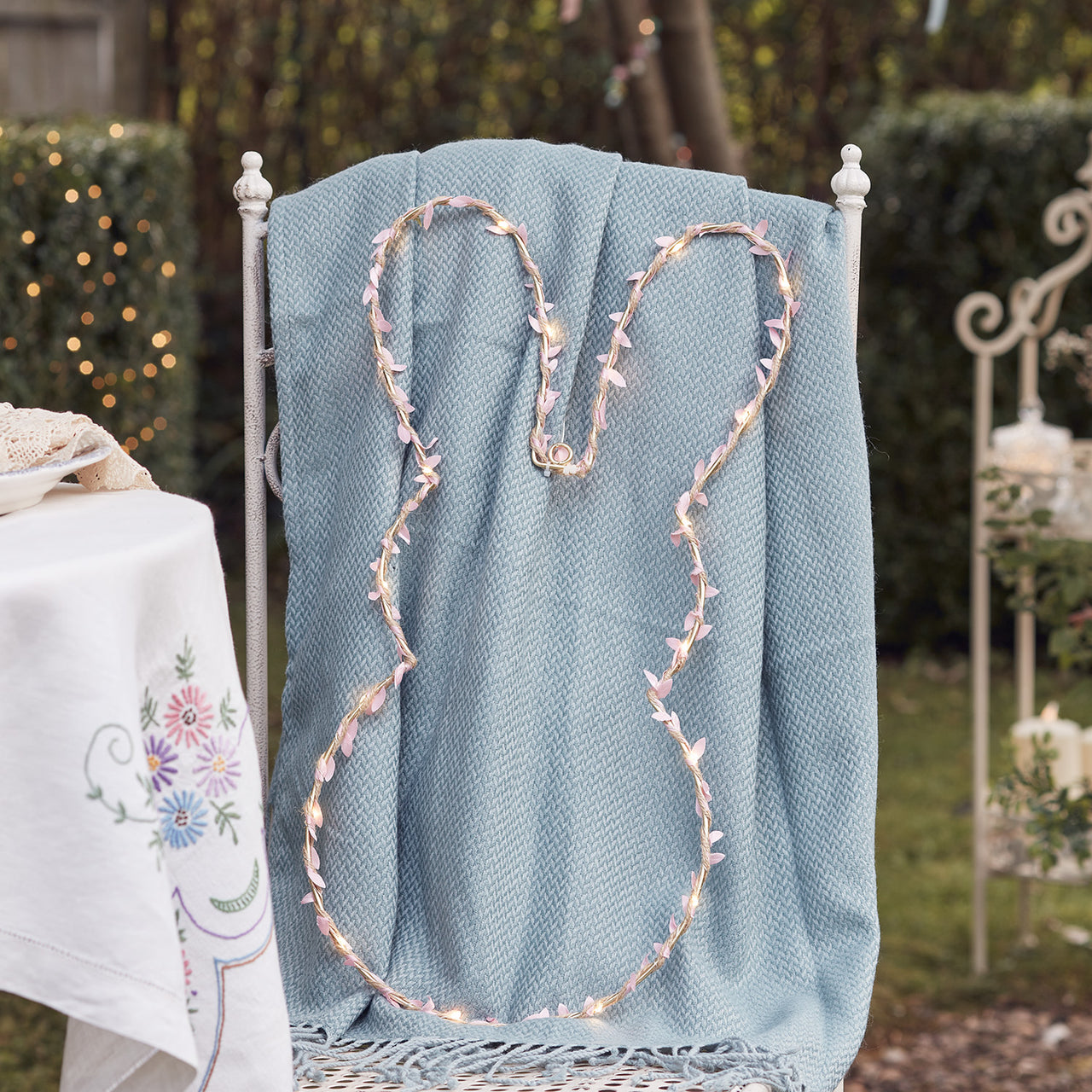 With intertwining pink petals and LEDs, our light-up bunny wreath makes a subtle yet highly effective Easter decoration. Hang it on a wall or lean it on a chair as the perfect addition to an Easter tea party. The 50cm-high silhouette features a gold frame and is illuminated with 20 micro LEDs along a twine-covered wire for the perfect rustic Easter charm.