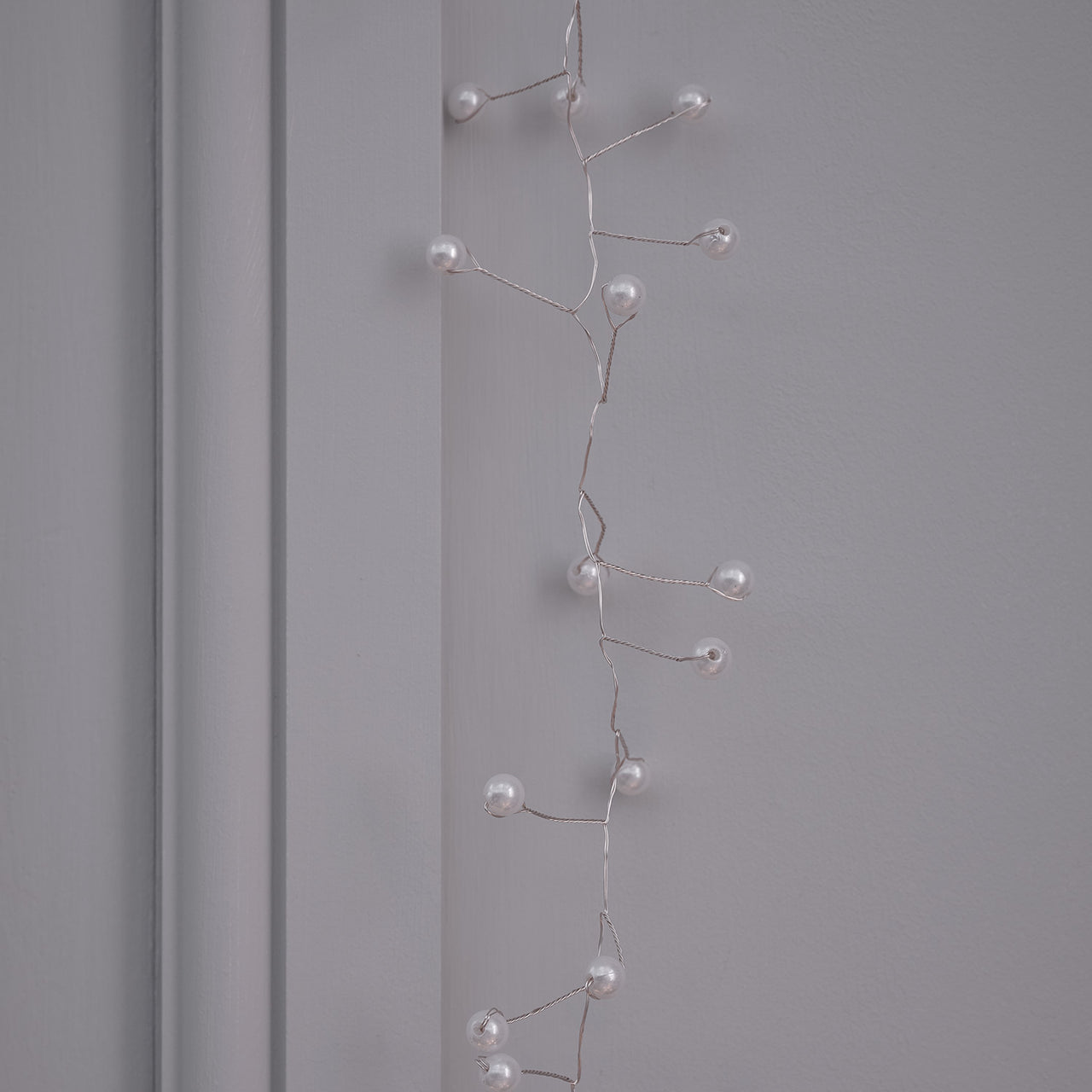 30 DAY RETURNSFor the prettiest set of lights to freshen up your space this spring, look no further than our Pearl Cluster Lights. A series of little pearl beads have been threaded onto 1.5m of delicate, flexible silver wire, designed to imitate a spray of berries. Every pearl houses a warm white micro LED, so that although this string looks gorgeous switched off, when illuminated, each bead glows like a tiny moon.