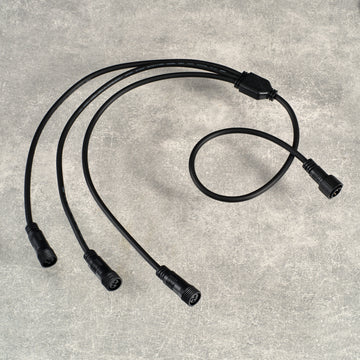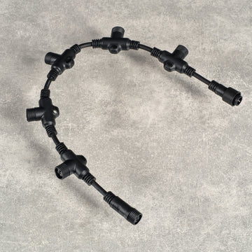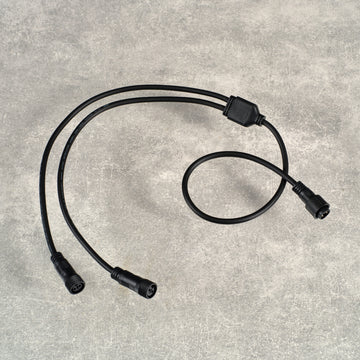 There is also the option to further extend the run of lights on the High Powered Plug by dividing the lights into two chains and attaching a 2-way splitter directly to the plug. Connect one chain of lights to each of the connectors running from the splitter. In this way, you can connect up to 96 sets of lights, or 480 m as preferred.