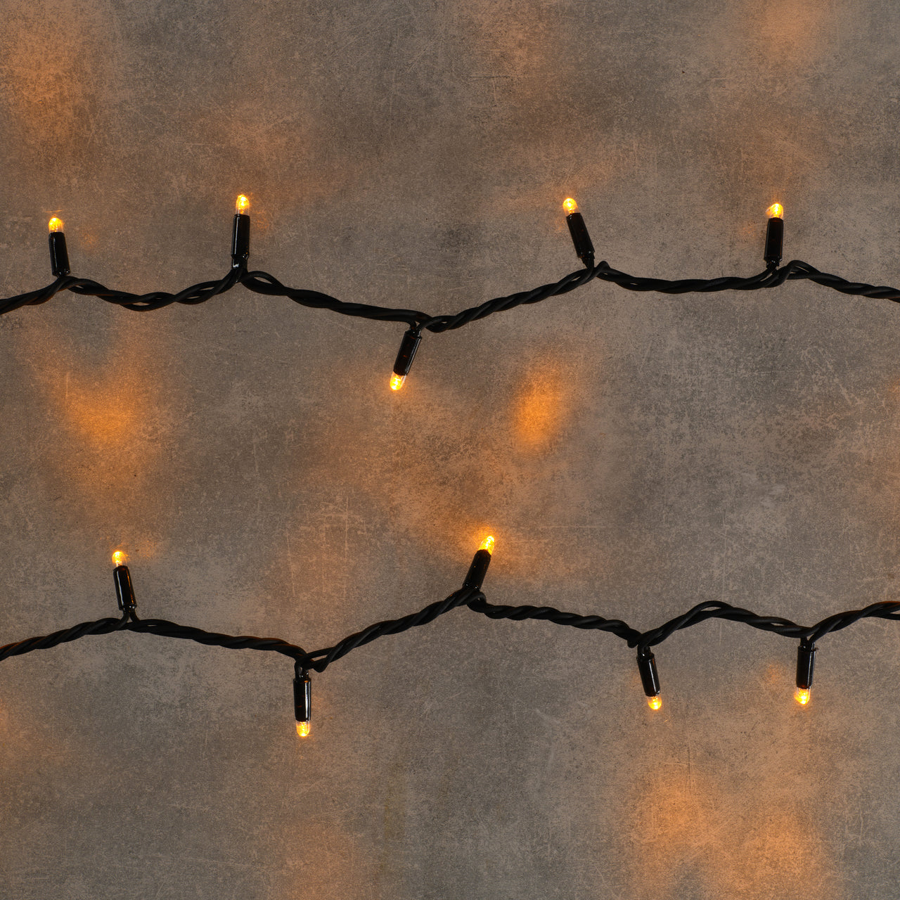A total of 50 LED bulbs in an amber toned traditional warm white shade are spaced along 5m of durable black cable which features a connector on each end.