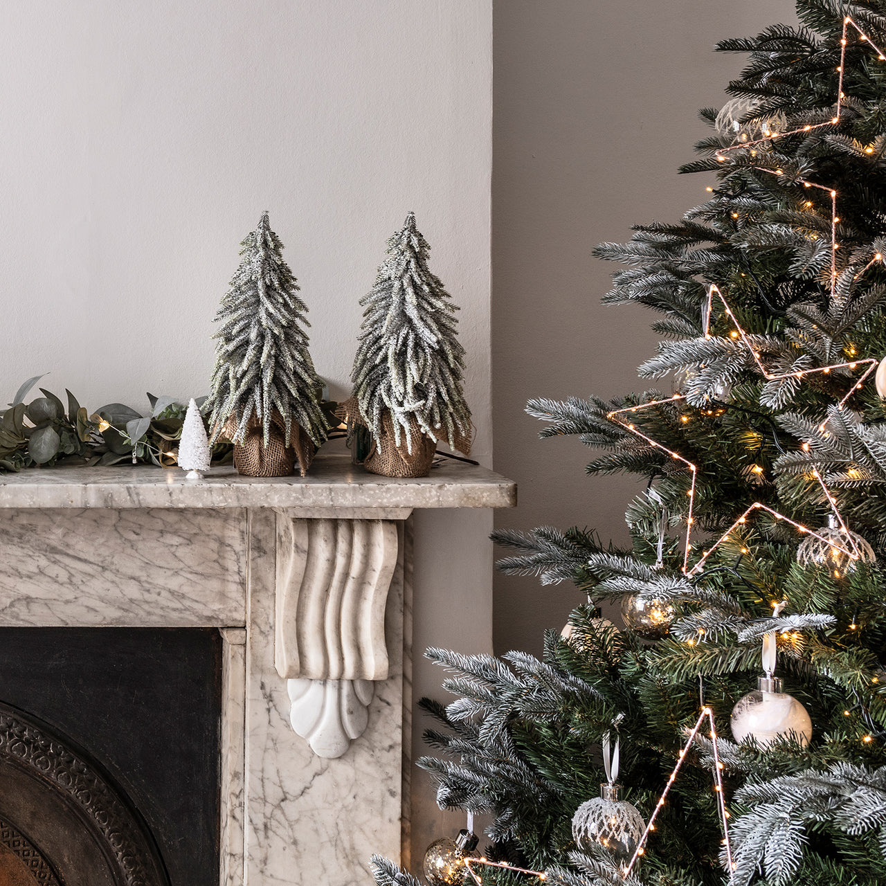 Whether you’re looking for the finishing touch to your mantelpiece or a magical addition to your window display, our snowy tree is the perfect piece! This elegant little tree pairs perfectly with micro lights for a Christmas sparkle. At 35cm, stand alone or as a trio to complete your festive look with some sparkle!