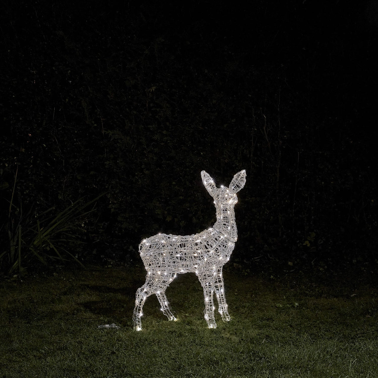 Bring the magic of Christmas home this winter with our battery operated Swinsty fawn. At 77cm in height and illuminated by 80 LEDs, you can change the colour of your fawn between white, warm white and a mixture of the two, to match the rest our you outdoor Christmas lights. Designed by studying wild Roe reindeer, our fawn features hand wrapped clear acrylic to reflect the glow from the LEDs for an extra seasonal sparkle. Powered by 3 x D batteries, you can style your fawn anywhere in your garden with no need for an outdoor plug. Stand alone or pair your fawn with the matching stag and doe for a complete reindeer family. To use, simply pop in your batteries, choose your LED colour and opt for the optional 6 hour timer function for an automatic shine at the same time each night.