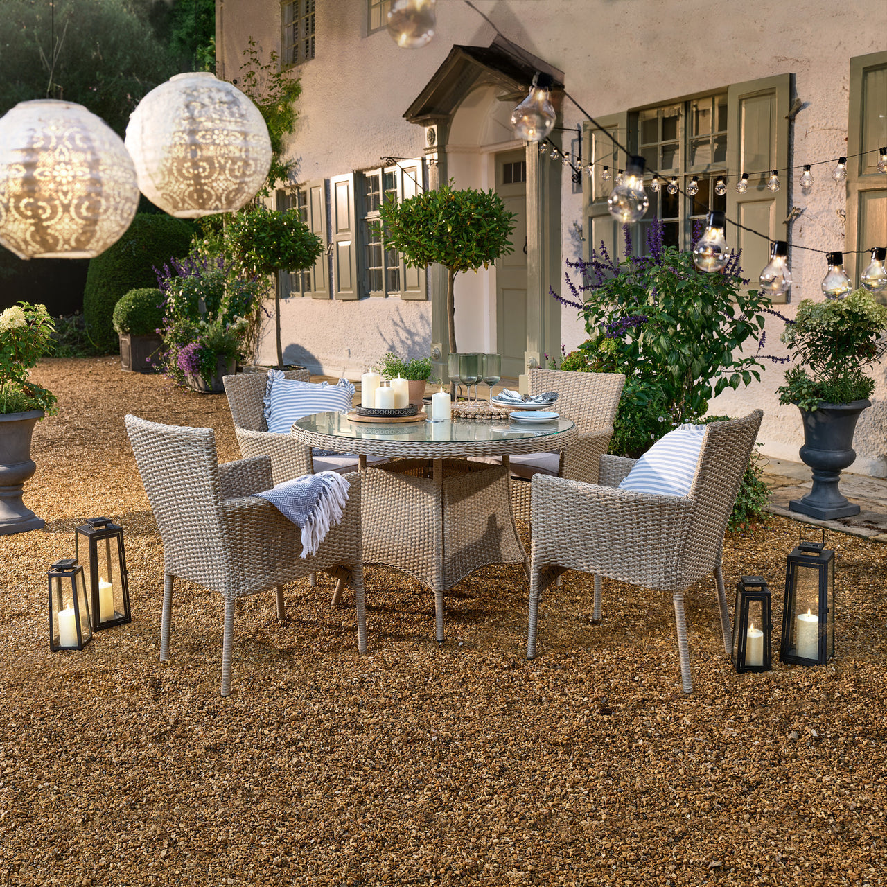 The Arran 4-Seater Round Dining Set is a real classic. It combines elegance of design with laid back comfort to create a timeless set of pieces for the garden.