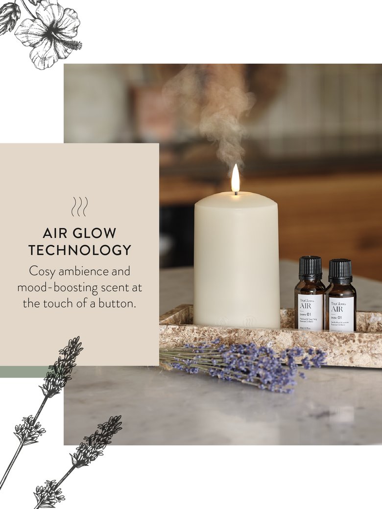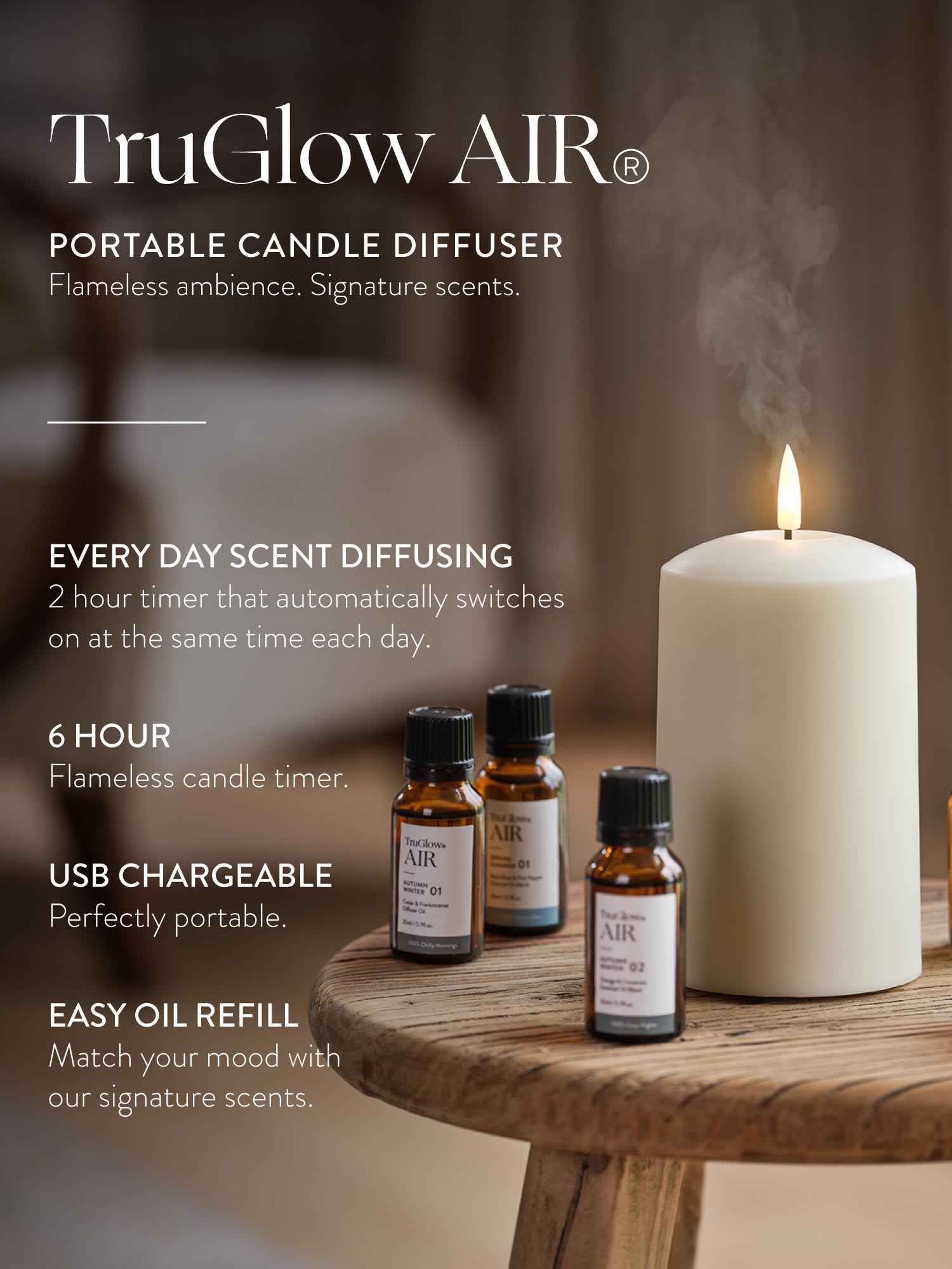 To use, simply attach a bottle to the atomiser chamber of your TruGlow AIR® and insert the chamber into the base of the candle diffuser. Use the remote control included with the TruGlow AIR® to switch on the diffuser and set the 2 hour diffuser timer to fill your space with fragrance.
