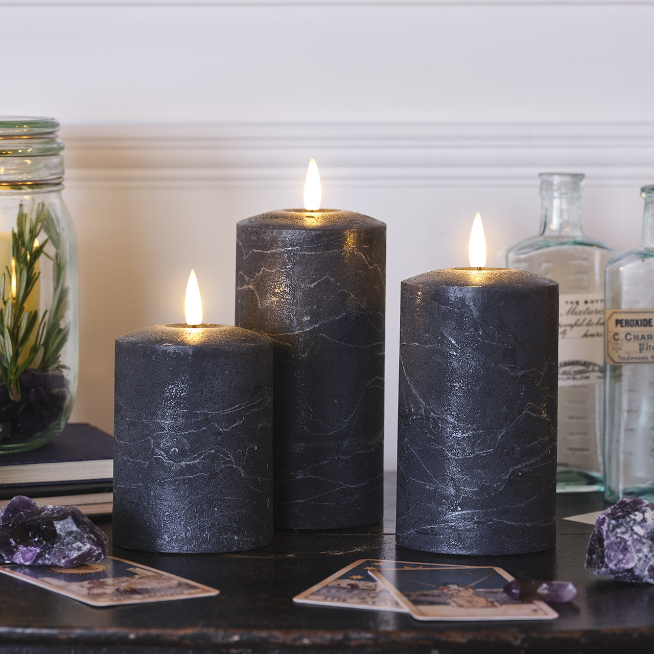 TruGlow® Dark Grey Distressed LED Pillar Candle Trio