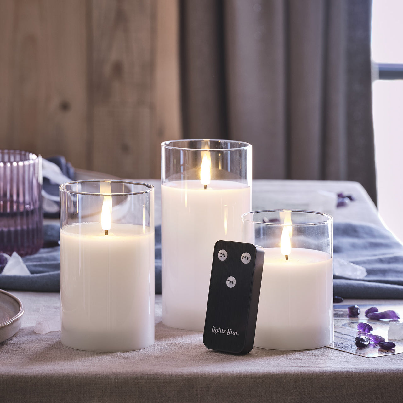 TruGlow® White LED Glass Candle Trio with Remote Control